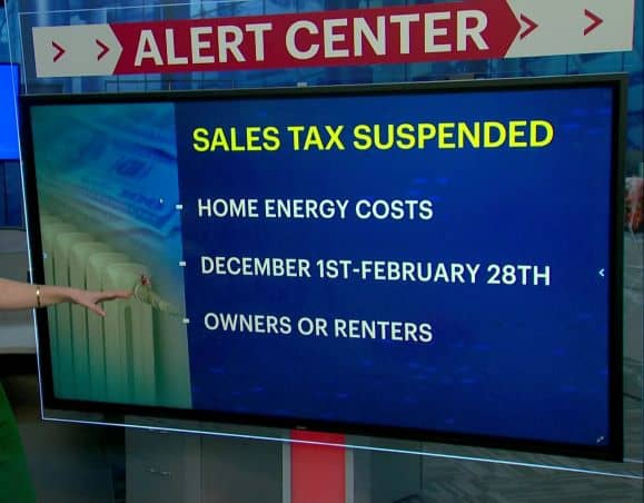 collection on home energy costs from December 1-February 28. The sales tax suspension covers home heating oil, propane, natural gas, electric, coal and wood for residential heating purposes and covers homeowners as well as rental units.